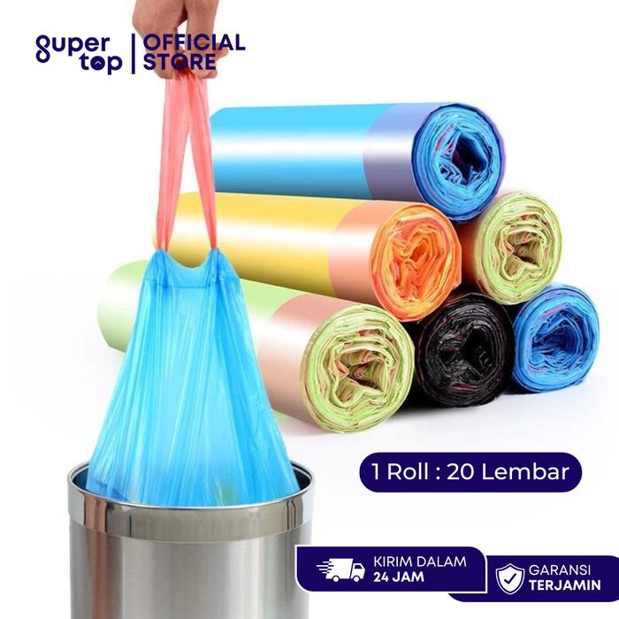 Kantong Plastik Sampah Roll + Tali isi 20PCS Kantong Sampah Plastik Gulung dengan Tali Praktis Minimalis - random