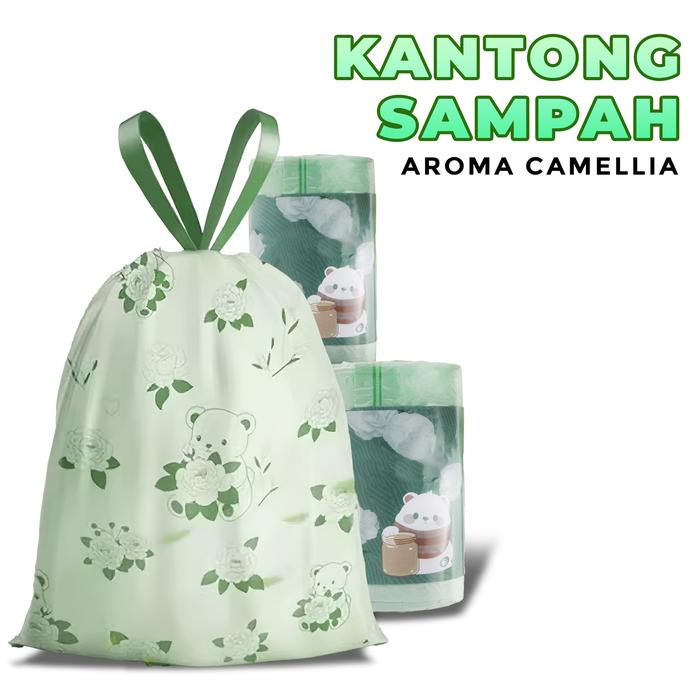 Kantong Plastik Sampah Wangi Aroma Camellia Plastik Sampah Lentur Dengan Tali -LD-8 - Sage 50 PCS