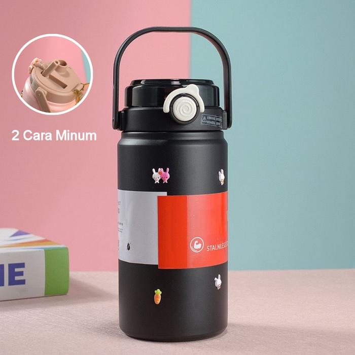 [Mskshop] Termos Tumbler Handle Jumbo Stainless Steel Vacuum Insulated 1000ml/ Botol Minum Stainless - XP Hitam