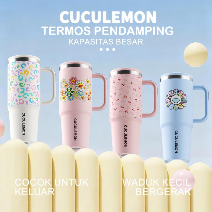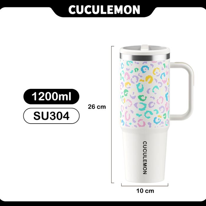 CucuLemon Tumbler Termos Stainless steel 1200ML panas dingin 24 jam DesainKartun Aesthetic Botol Minum - White
