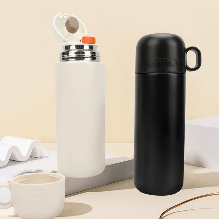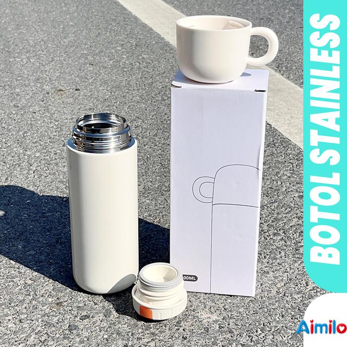 Botol Minum Stainless Steel Termos Air Panas Kopi Teh Dengan Tutup Gelas Tahan 8 Jam Kapasitas 500ml - PUTIH | F120-1