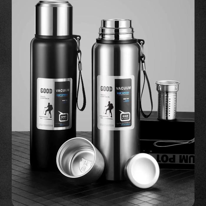 BZ-174 Botol minum 2L Termos premium panas dingin kapasitas besar travel hot cold thermos - black 2000ML