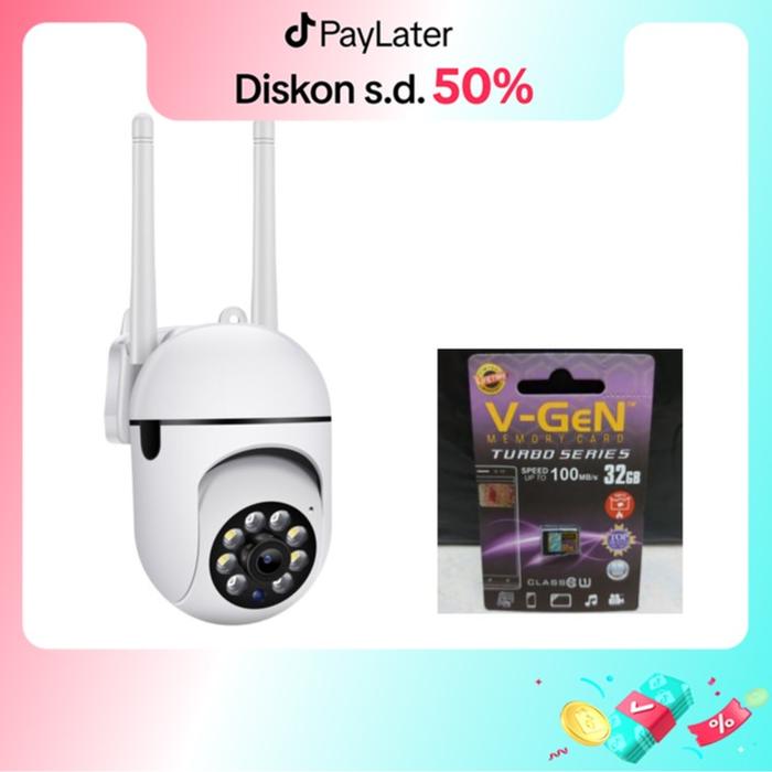Bundle CCTV 2 ANTENA PTZ Mini Bohlamp Wireless With Memory V-GeN 32GB kamera wifi led cam Plastik Camera
