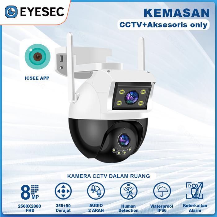 EYESEC CCTV Outdoor WiFi 8MP Dual Lens Waterproof IP Camera 360° PTZ Kamera HP Jarak Jauh Garansi 1 Tahun - 8MP