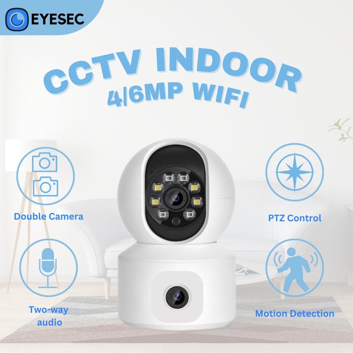 EYESEC CCTV Indoor WiFi 4MP dan 6MP Dual Lens IP Camera 355° PTZ Kamera HP Jarak Jauh Smart Adaptor - H10JH01
