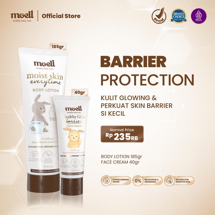 Moell Barrier Protection Body Lotion 185gr & Face Cream 40gr - Perawatan Kuit Bayi dan Anak - BUNDLE NO FREE