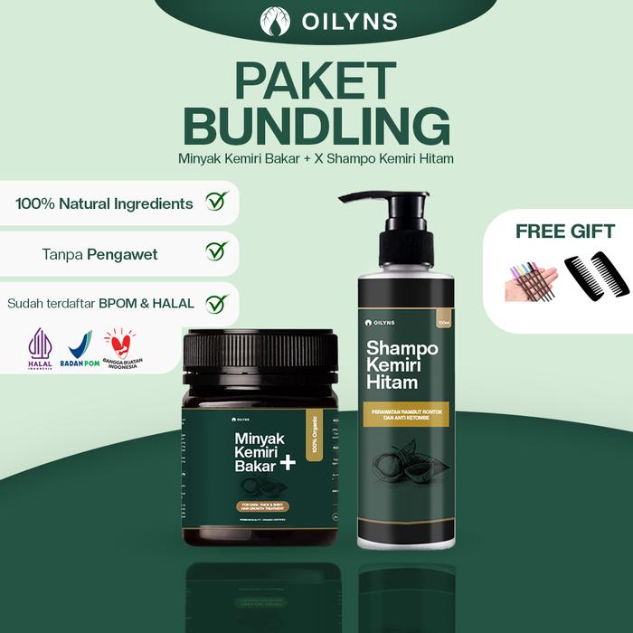 [BUNDLING] Oilyns Minyak Kemiri Bakar PLUS 100gr & Shampo Hitam 100ml – Penumbuh Rambut Melebatkan & Anti Rontok