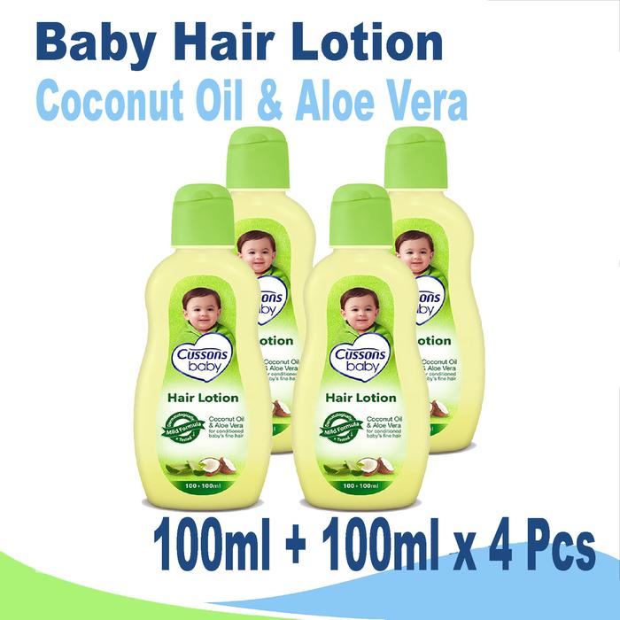 [ 4 PCS ] Cussons Baby Hair Lotion Coconut Oil & Aloe Vera 100ml + 100ml x 4 Pcs - Losion Rambut Bayi - Spesifikasi