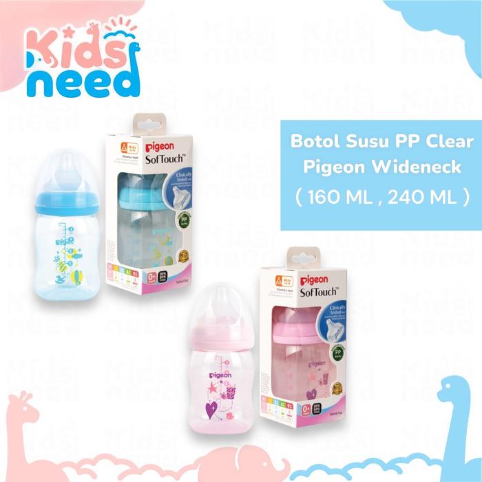 Pigeon Botol Susu PP Clear Wide Neck Soft Touch Anti Colic 160ml 240ml Bayi Biru Accessories Bottle - BLUE 240ML