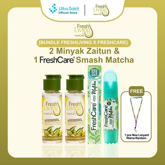 [BUNDLE FRESHLIVING X FRESHCARE] 2 Minyak Zaitun + 1 FC Smash Matcha - 2 Zaitun Oil+1 FC Smash Matcha Free 1 Lanyard