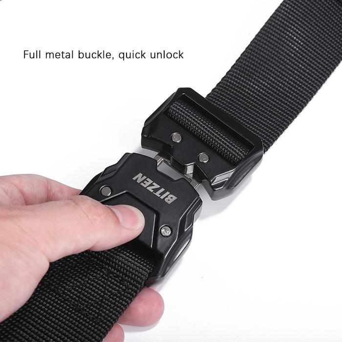 Bitzen Ikat Pinggang Pria Nylon Fast Unlock Canvas Sabuk Tactical Gesper Besi Kanvas - Hitam 125cm