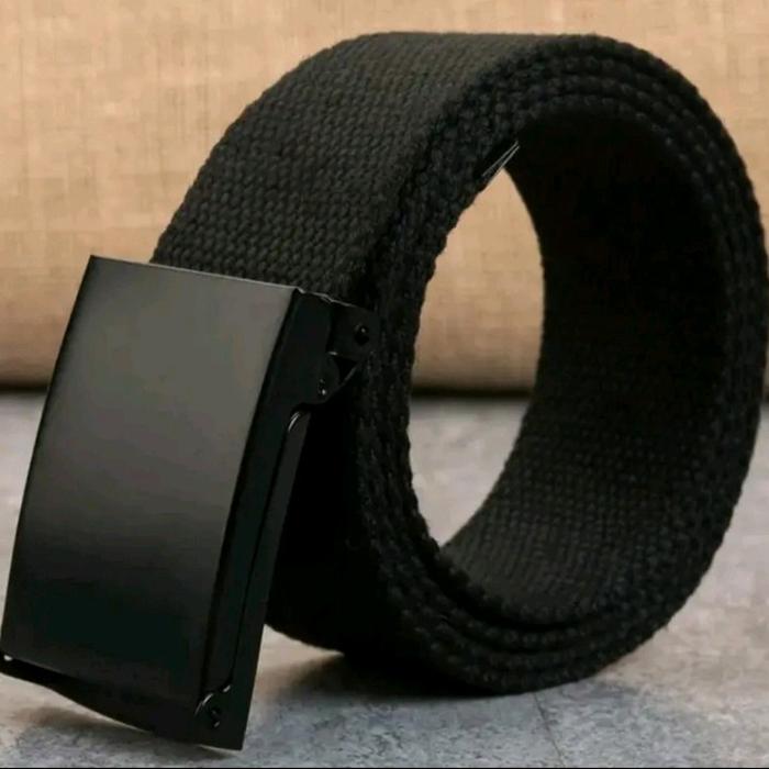 Ikat Pinggang Jumbo 150cm Gesper Pria dan Wanita Tali Katun Besi Hitam Besi Kanvas Coklat - Hitam
