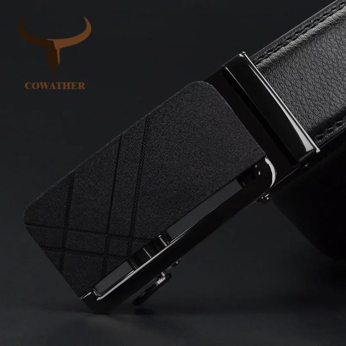 Ikat pinggang Pria Cowather Kulit Sapi Asli - CZ142 Stainless - Hitam 130CM