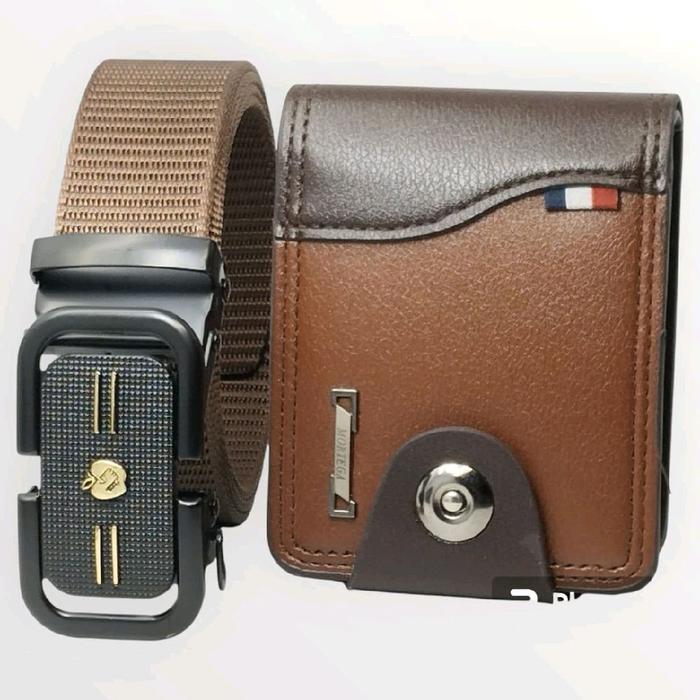 Gesper Sabuk Pria NYLON CANVAS rell Kepala besi 16b Plus Dompet mini kancing - Hitam