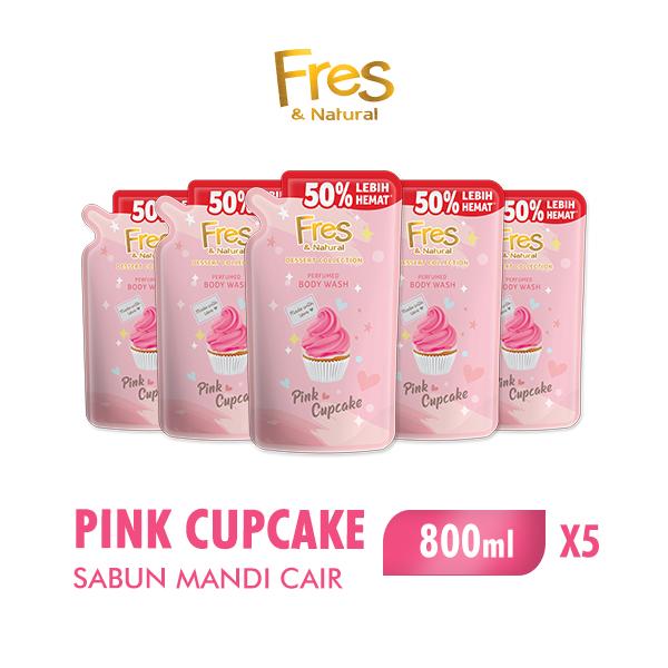 FRES & NATURAL Sabun Mandi Cair Pink Cupcake Pouch 800ml x5