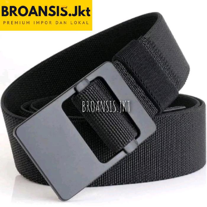 Sabuk Ikat Pinggang Pria Dan Wanita Hitam Polos Katun Model Slip Gesper Stainless Stainless - HITAM