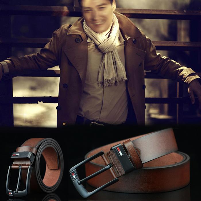 Bitzen Ikat Pinggang Pria Kulit Sintetis Premium Fashion Vintage Bisnis Pria Sabuk Hitam/ Khaki / Kopi - Hitam 120cm