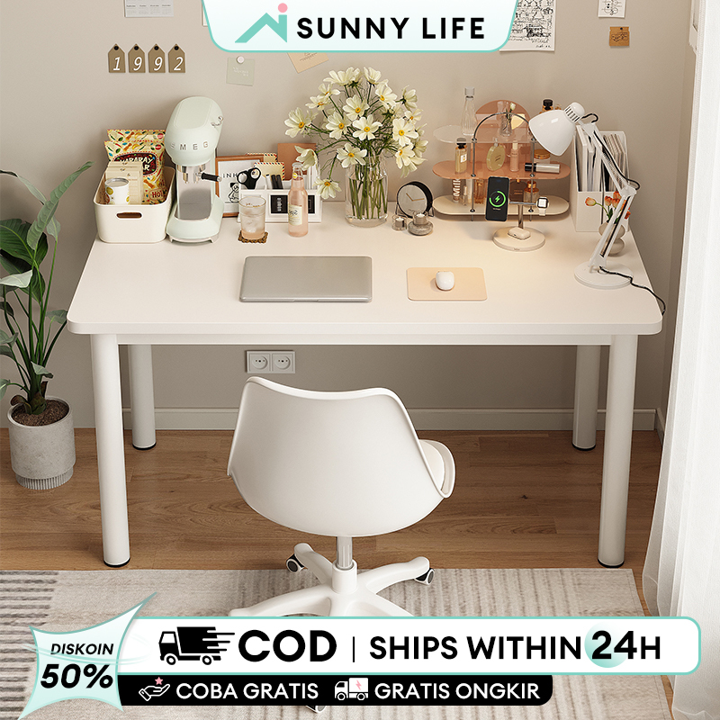 Meja Belajar Aesthetic Meja Kerja Meja Komputer Meja Kantor Besi Meja Kamar Tidur Putih 120CM