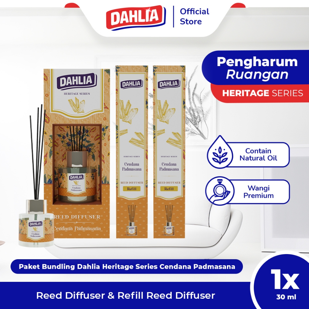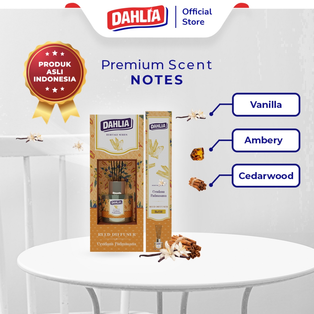 Dahlia Reed Diffuser Heritage Series Cen Padmasana & Refill 2Pcs (30ml) - Pengharum Ruangan dengan Wangi Mewah & Menenangkan
