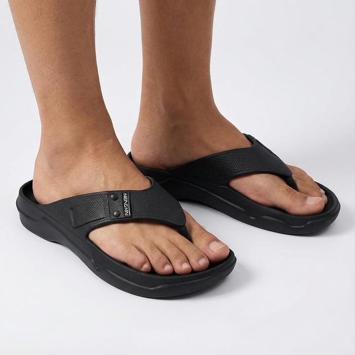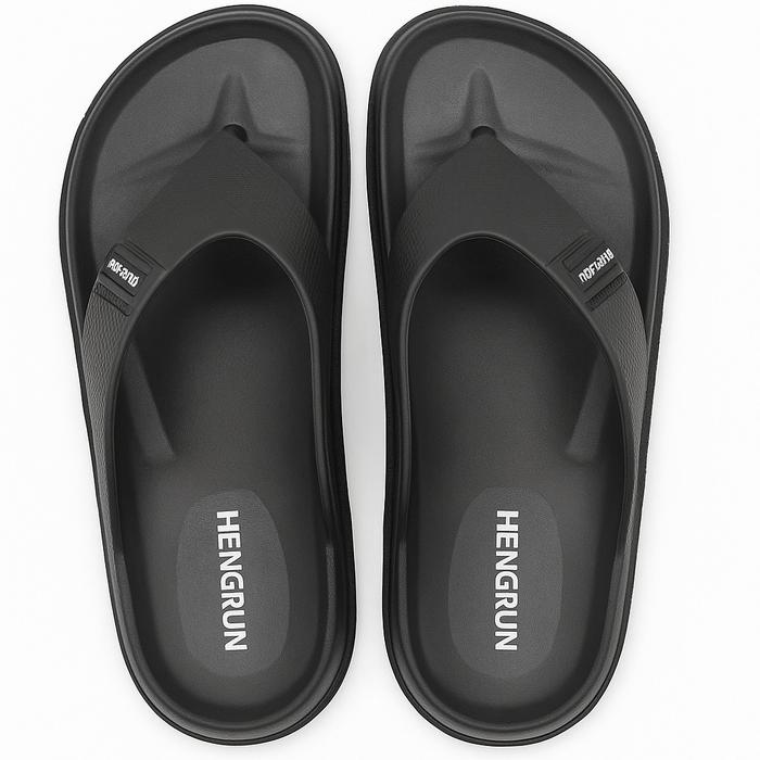 Hengrun Sandal Jepit Pria 2 Strap Kekinian Empuk Anti Slip Nyaman Seharian Karet Eva Black 8040H Non-Slip Antibacterial