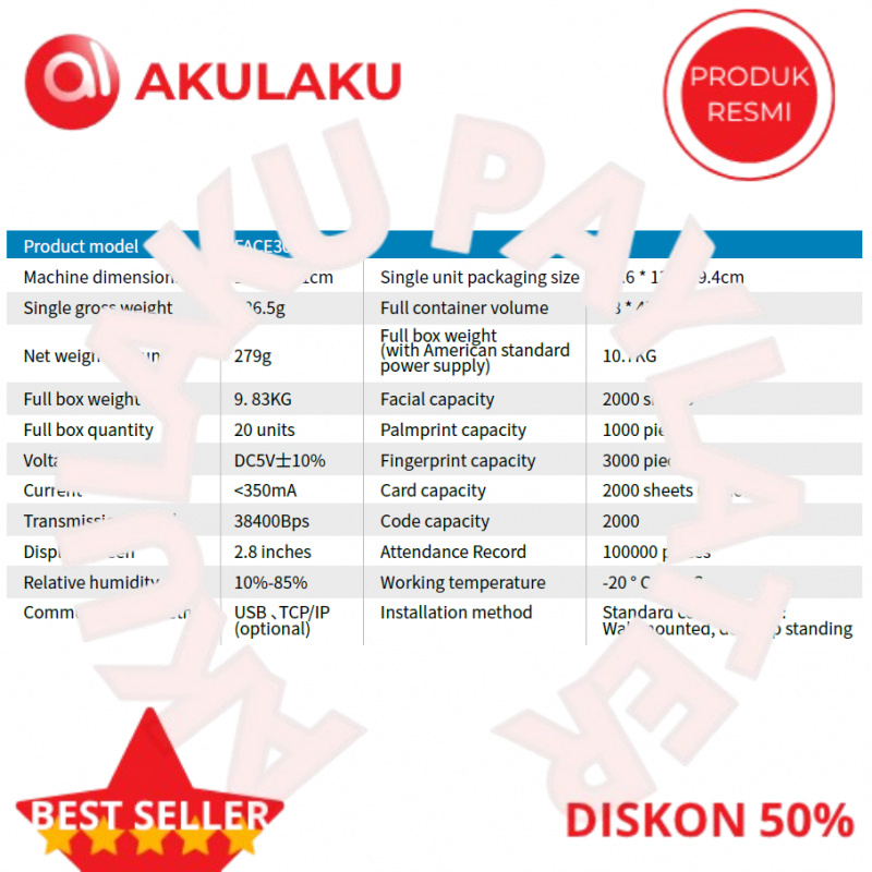 Mesin Absensi Sidik Jari + Deteksi Wajah USB - BIOMETRIC EXPERT FACE3000 - U