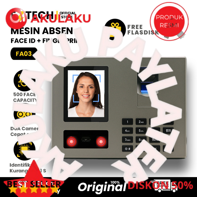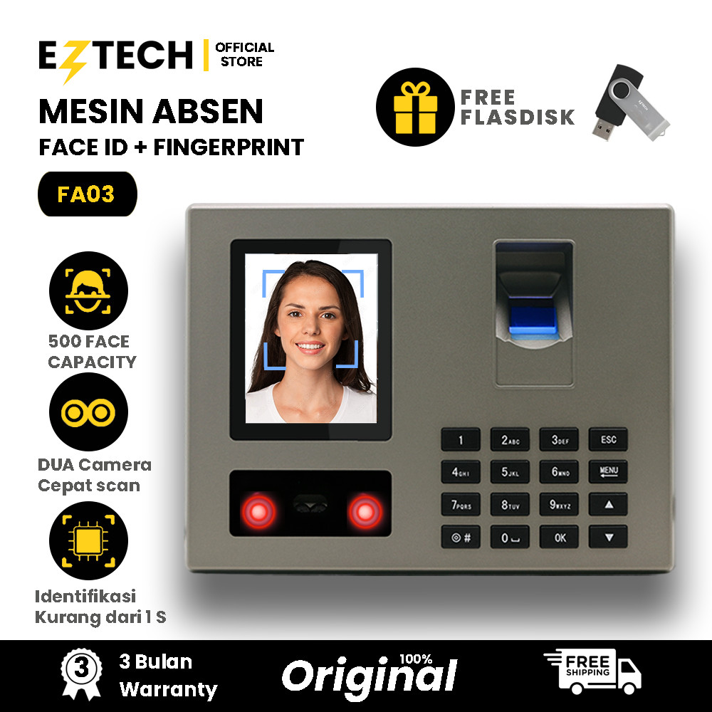 Mesin Absensi FA03/FA06 Sidik Jari + Deteksi Wajah 1500 Sidik Jari 500 Wajah Bahasa Indonesia [EZTECH]