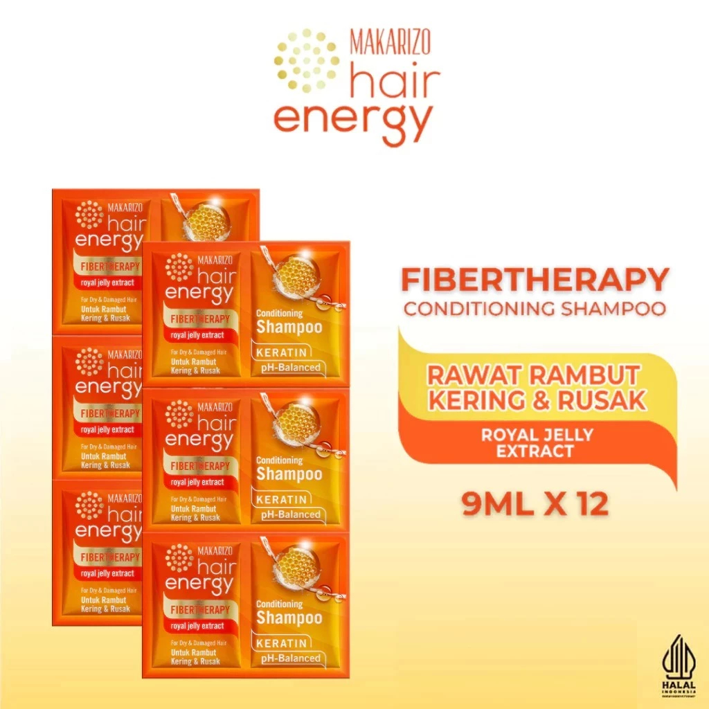 MAKARIZO Hair Energy Fibertherapy Conditioning Shampoo 9mL Renceng Isi 12 Sachet