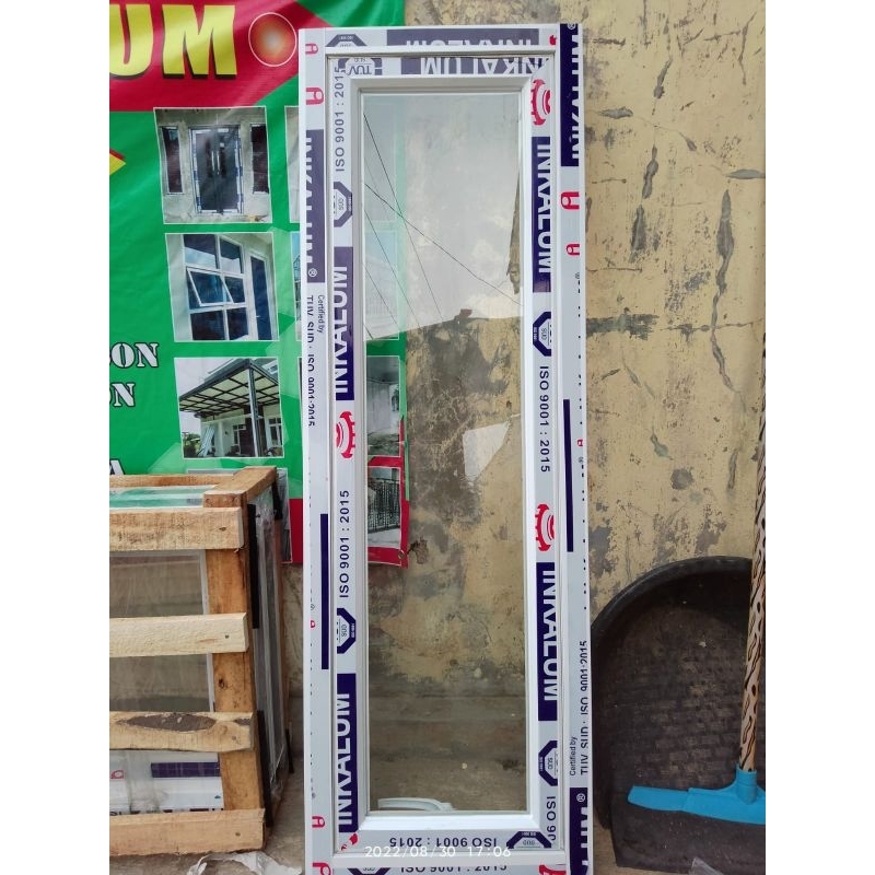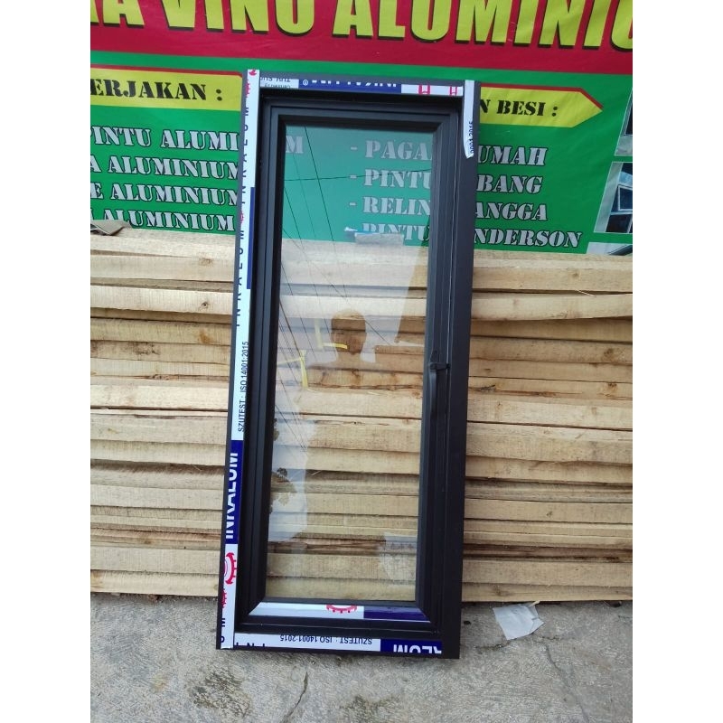 jendela aluminium uk T 120x50 kusen 3" kaca 5mm free packing kayu