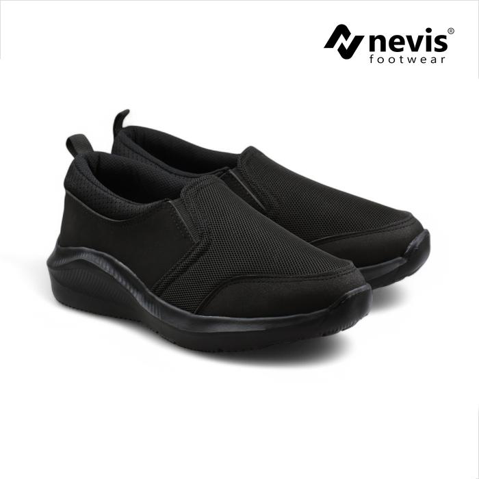 Nevis Sepatu Slip On Pria Jumbo Big Size 39-49 Nvs 87 Sekolah Kerja Casual Sneakers Full Black Hitam Polos Franco Kasual
