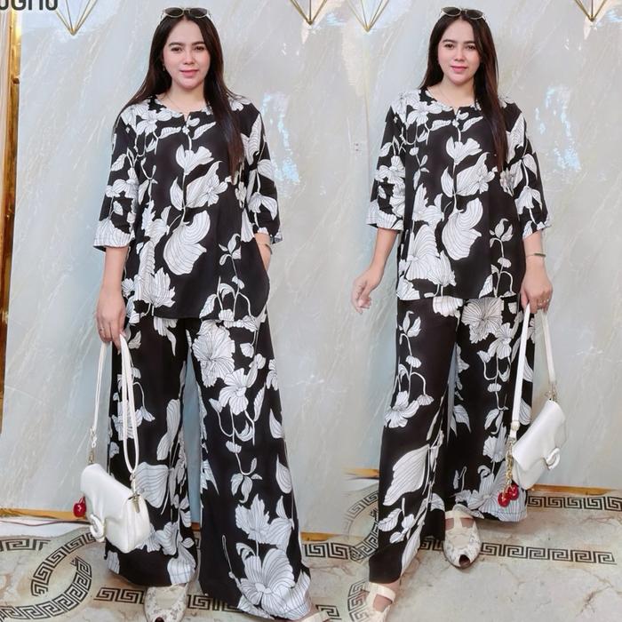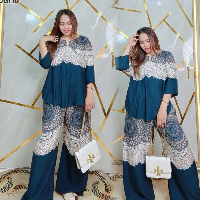 Naila Set Vol.2 Setelan Wanita Busui Bahan Rayon Adem Baju Dewasa Kulot Motif - Nila Set A, Allsize
