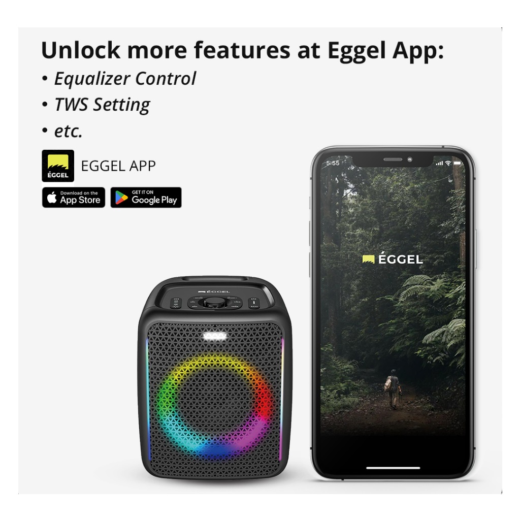 Speaker Bluetooth Eggel Fortis 2 Portable Party with RGB Lights