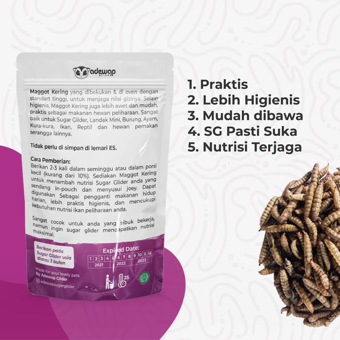 MAGGOT KERING BSF / CAMILAN PROTEIN SUGAR GLIDER / MAKANAN SUGAR GLIDER - 40 GRAM