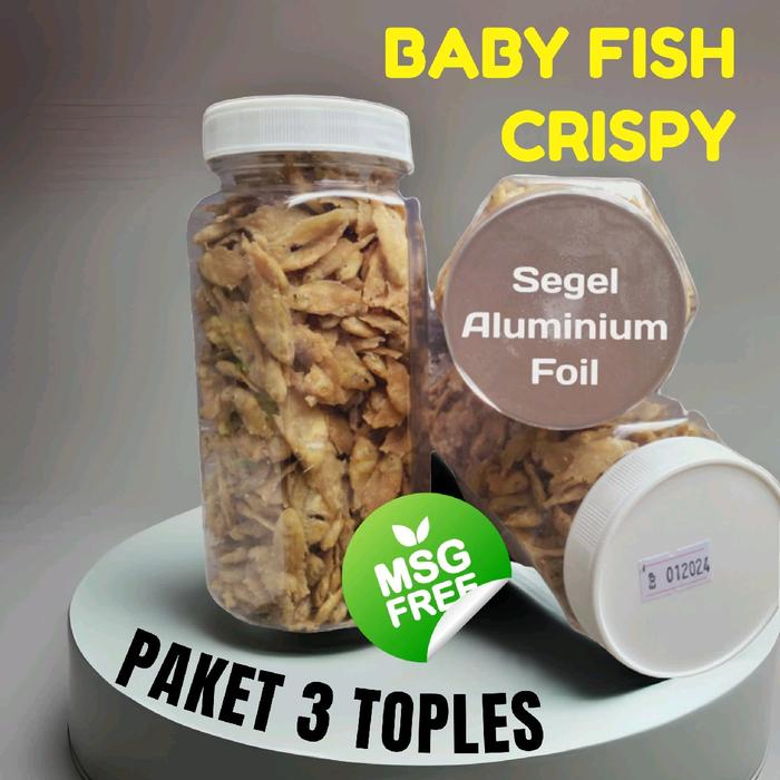 Paket 3 Toples Baby Fish Crispy 200gr Tanpa MSG Camilan Kering Food Snack Goreng Cemilan Keripik Makanan