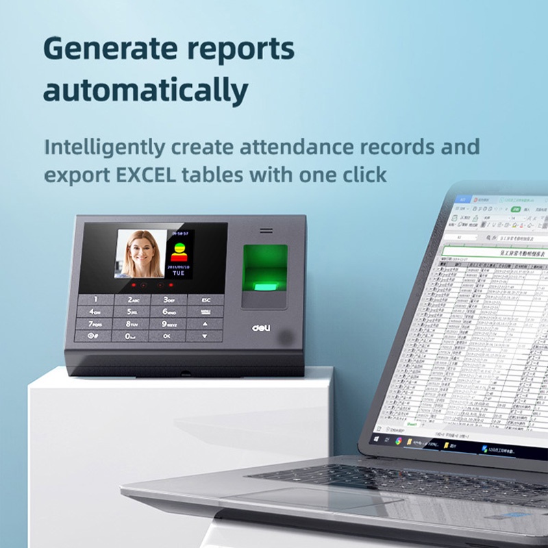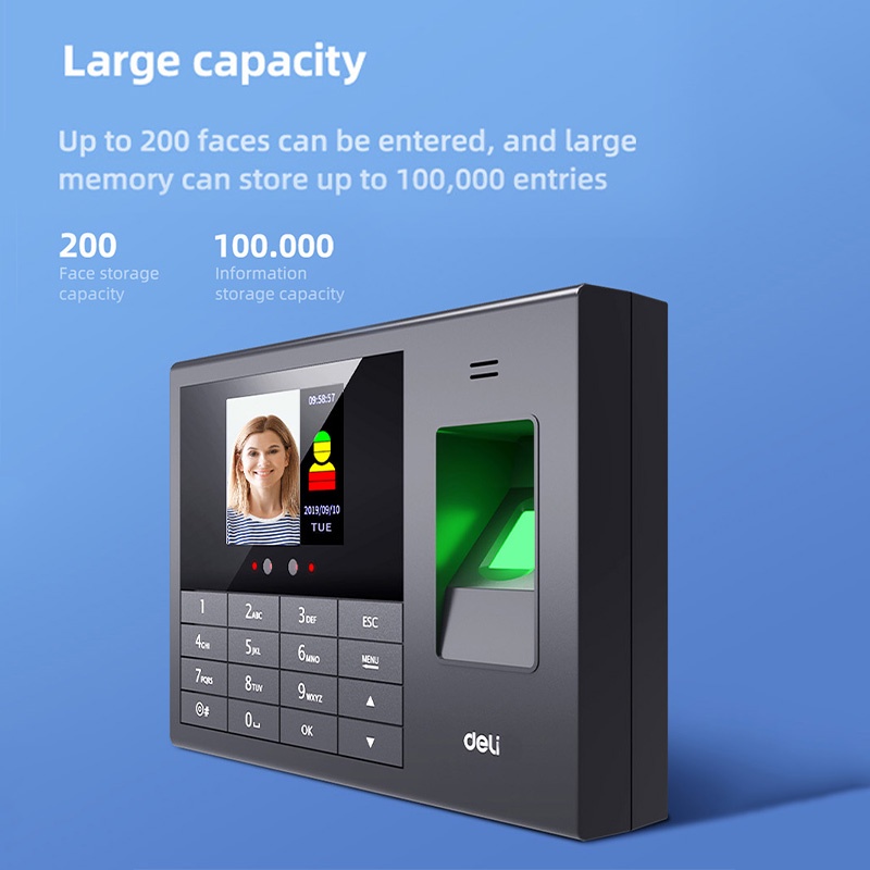 Deli Mesin Absensi Sidik Jari Deteksi Wajah 1000 Sidik Jari 200 Wajah Attendance Machine Bahasa Indonesia E3765