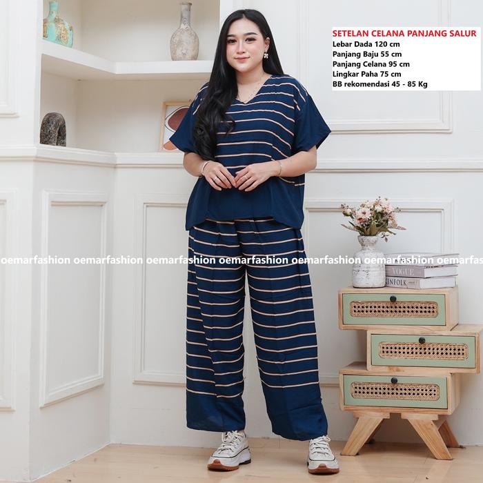 Setelan Celana Panjang Kulot Motif Salur || Setelan Batik Ld 120 Panjang Celana 90 || Bahan Rayon - Hitam