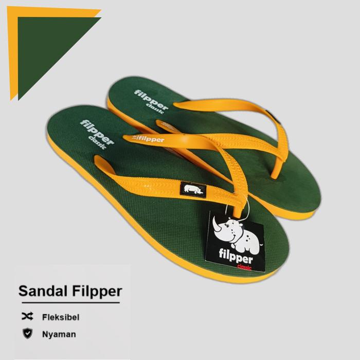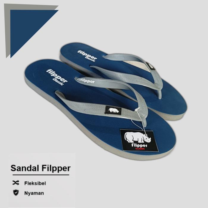 Sandal Jepit Filpper Pria Dan Wanita Bahan Karet Rubber Lentur Tidak Licin - Navy Kuning, 36