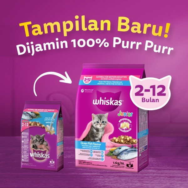 WHISKAS Junior Makanan Anak Kucing Kering Pilih Rasa 450gr (2-Pack)