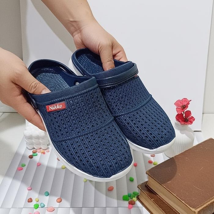 Sepatu Sandal Karet Baim Nikko Sl 8151 Size 39-43 Selop Bakpao Hitam Tahan Air Nyaman Pria - Navy, 39