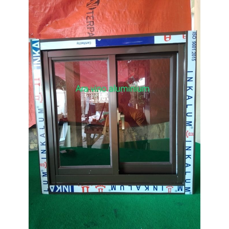 jendela aluminium 60x60 sleding,merek inkalum,kaca 5mm,+palet kayu