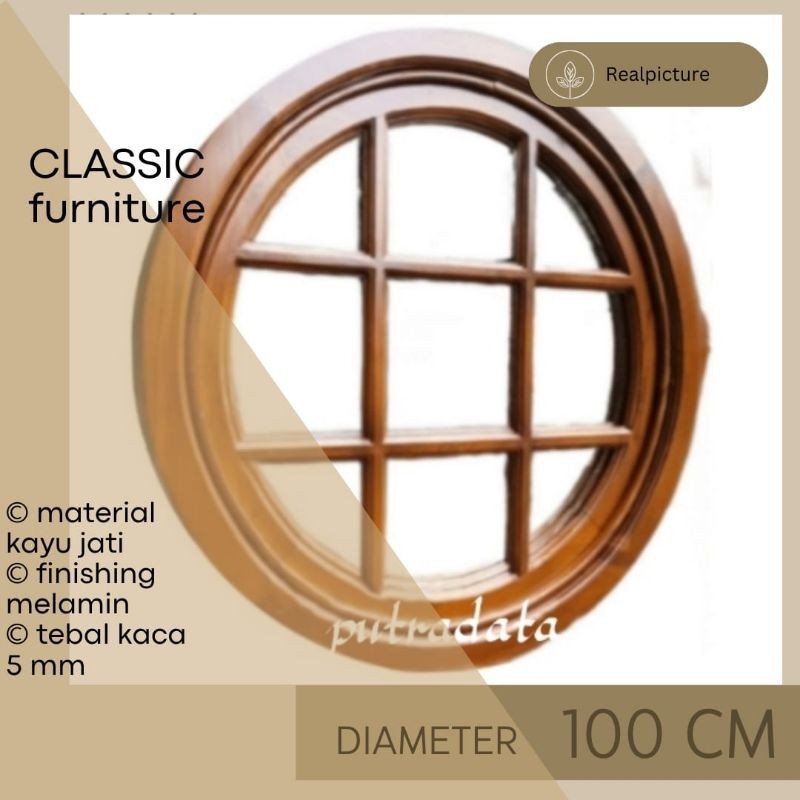 Dekorasi Jendela Rumah Minimalis 100cm | Kusen Bulat Putar Kayu Jati