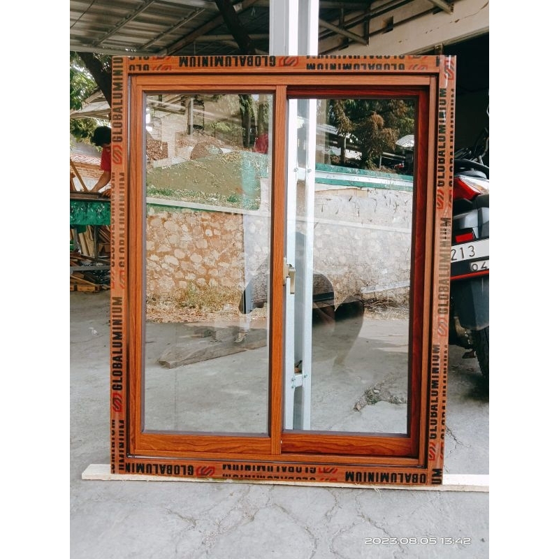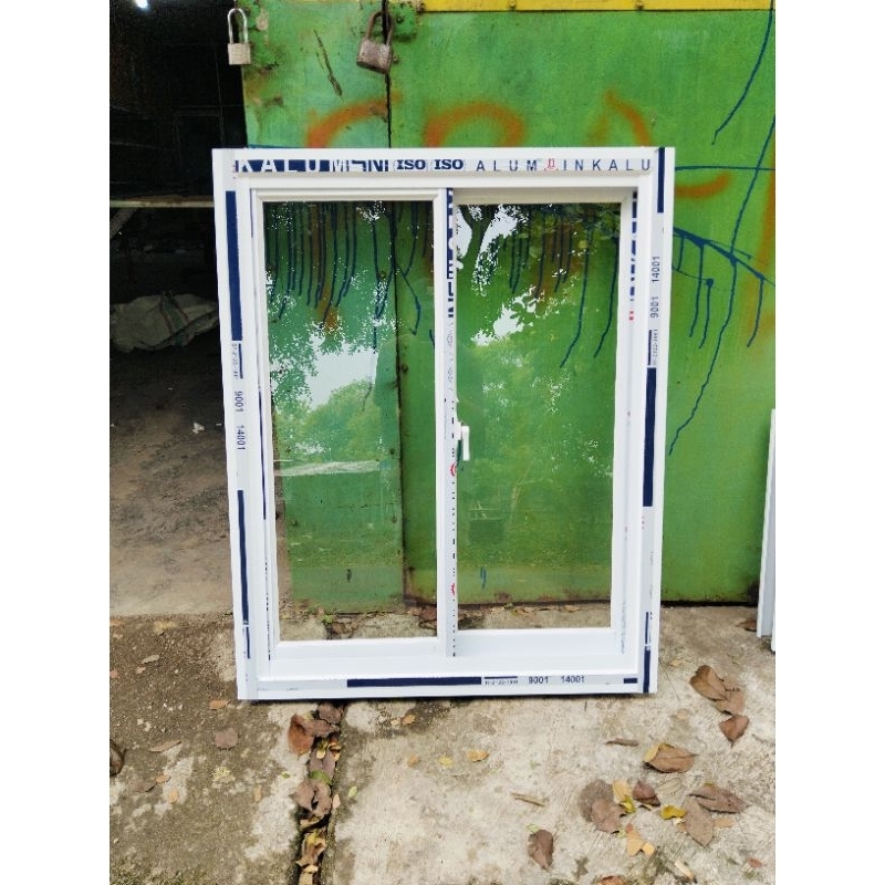 jendela sleding alumunium uk T 100x80 ukuran luar kusen k luar kusen,merek inkalum lebar 3",tebal kaca 5 mm,free packing