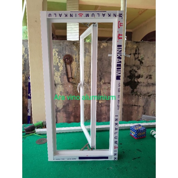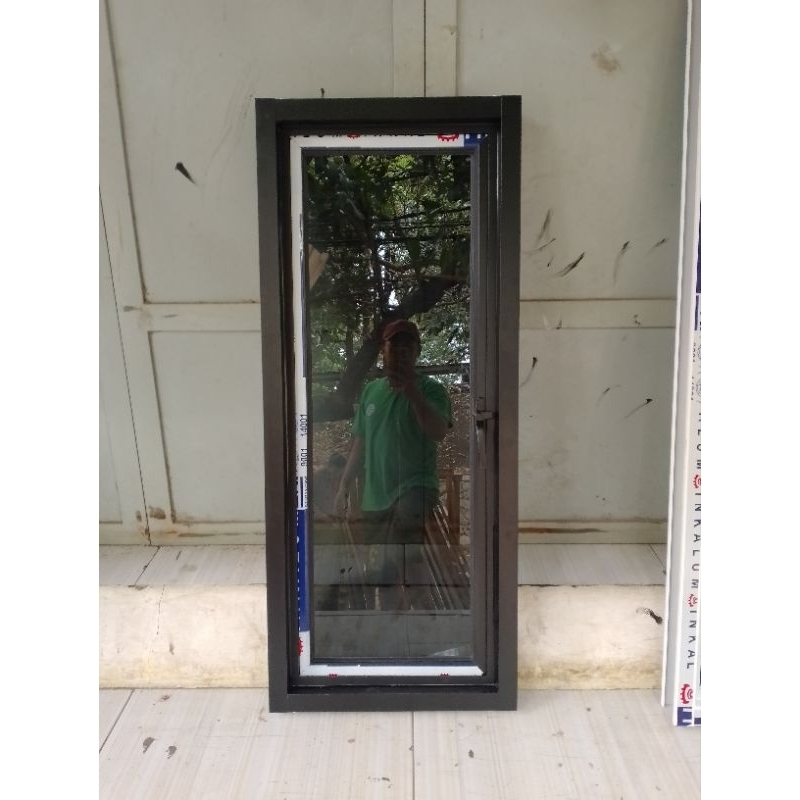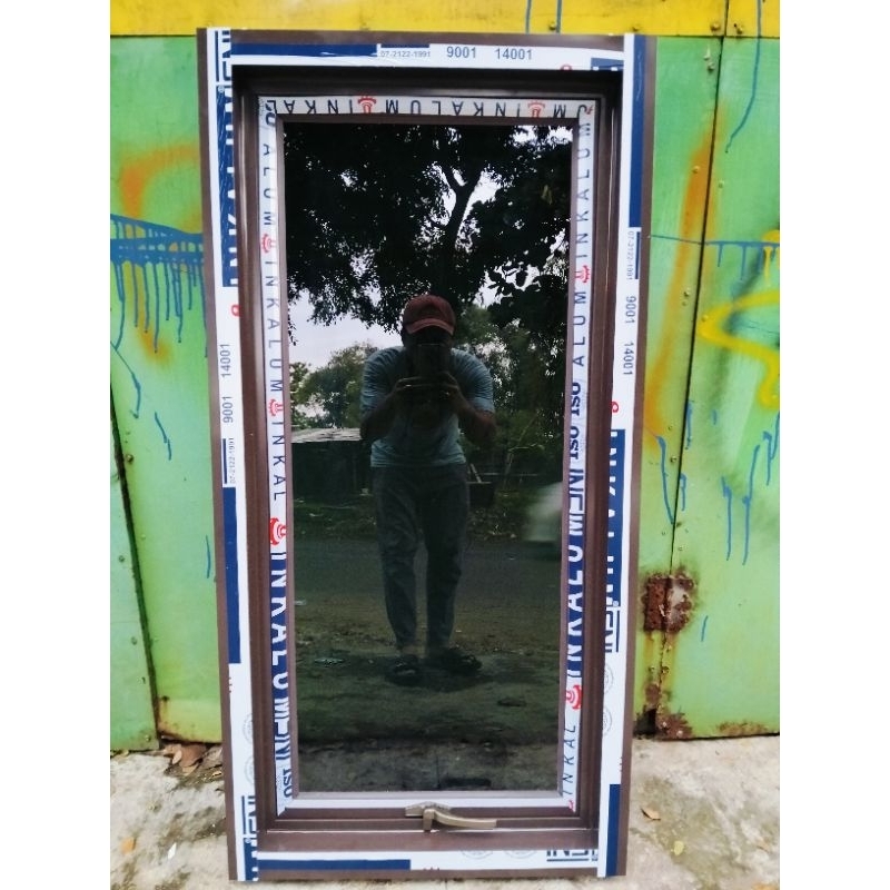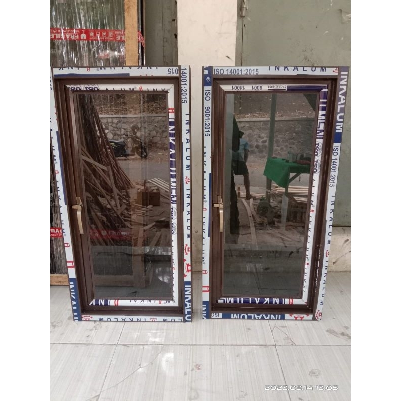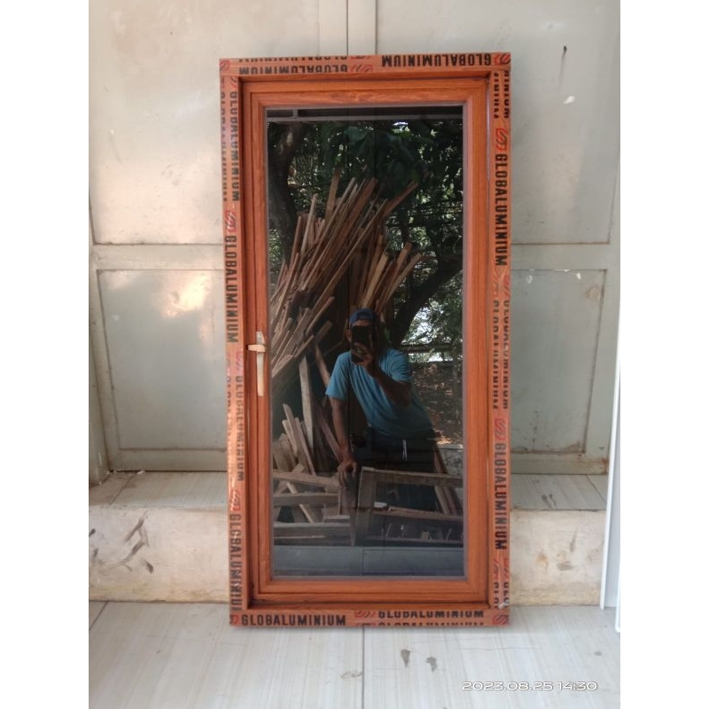 jendela aluminium ukurn T 100x50,kaca 5mm+ palet kayu