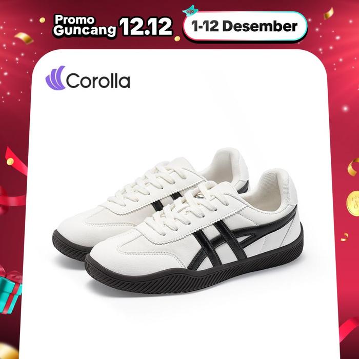 Corolla Maxi Sepatu Olahraga Wanita Nyaman Sepatu Outdoor Sekolah Sepatu Casual Samba Sport Shoes Sneakers Hitam Putih B