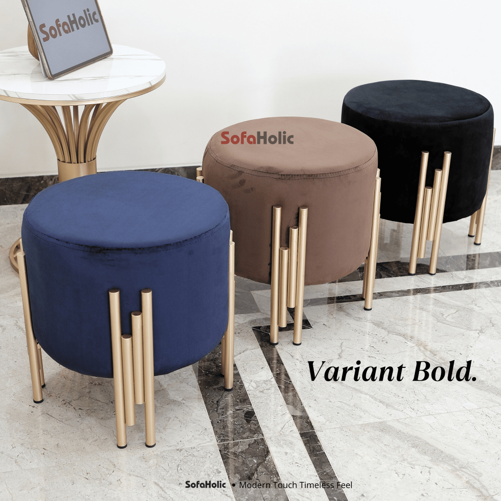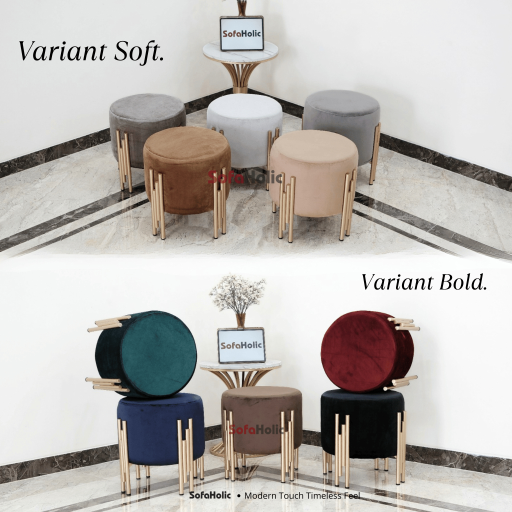 Sofaholic Stool Sofa Bulat Puff Bambu Besi Minimalis Gold Aesthetic Anti Karat Bangku Ruang Tamu