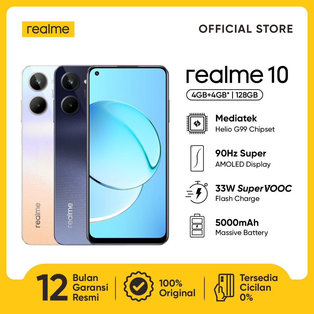 OFFICIAL STORE realme 10 4+128GB (Helio G99 Chipset | 90Hz Super AMOLED Display hp realme terbaru tanpa dp