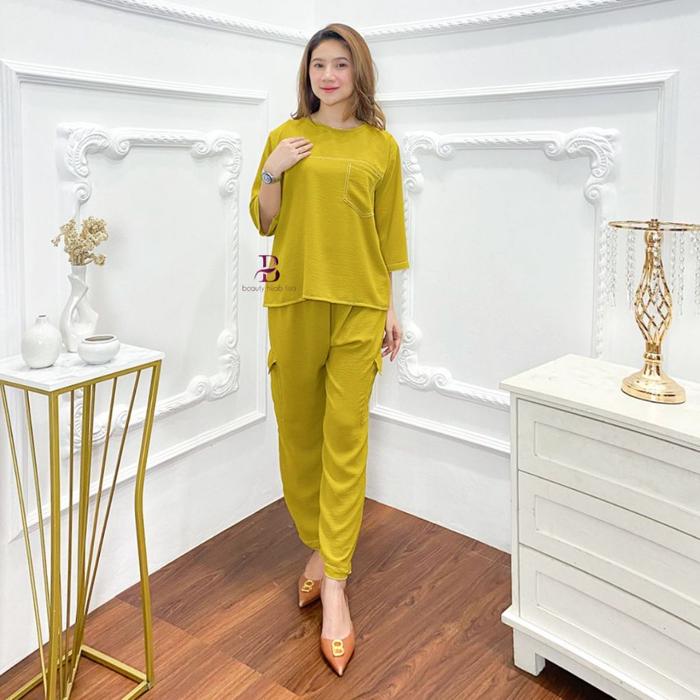 Dasterbeauty - Revina Baju Setelan Wanita Kekinian Terbaru 2025 One Set Korean Style Setcel Remaja Dewasa Crinkle Airflo