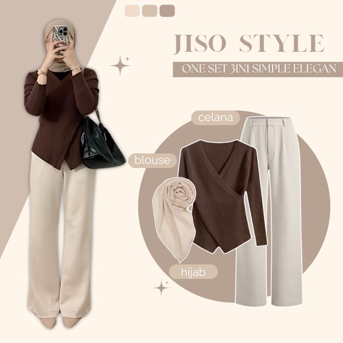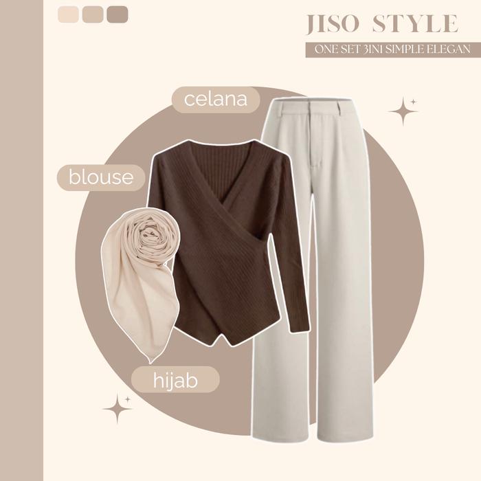 One Set 3In1 Korean Style | Blouse Jiso + Celana Kulot + Hijab | Setelan Remaja Kekinian - Am44N Baju Atasan Wanita Dew