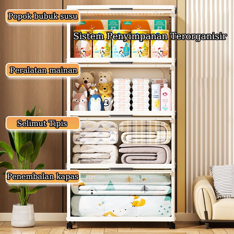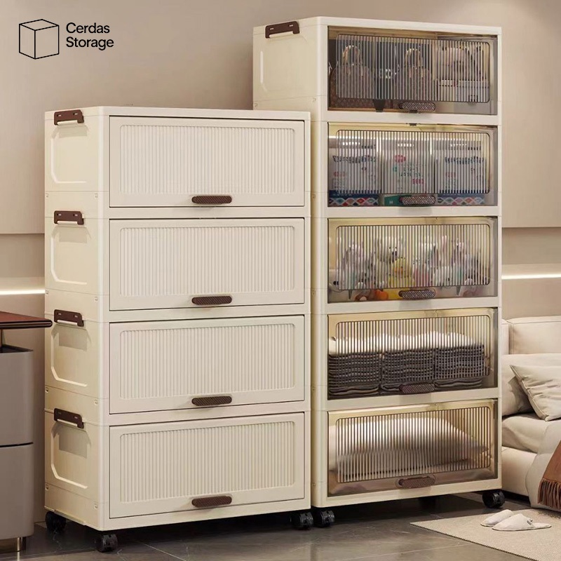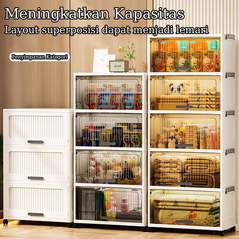 Lemari Plastik Lipat Tutup Flip/Lemari Plastik Lipat Susun/Rak Buku Serbaguna Estetik ada Roda