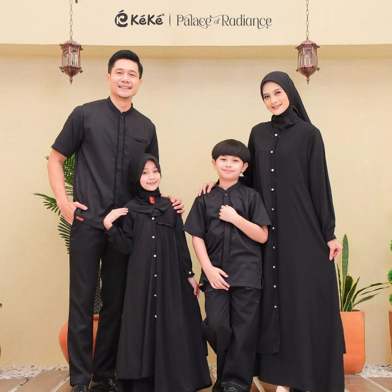 Keke Busana | Sarimbit Abaya Gamis Koko Couple Keluarga Baju Lebaran Terbaru 2026 - Arabella Black