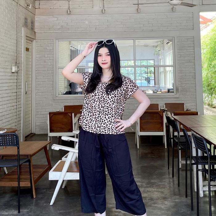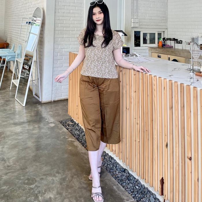 Oneset Kekinian Modis Faira Oneset Celana 7/8 Rayon Motif Baju Cantik Wanita Nyaman Setelan Dewasa Santai Bali Panjang